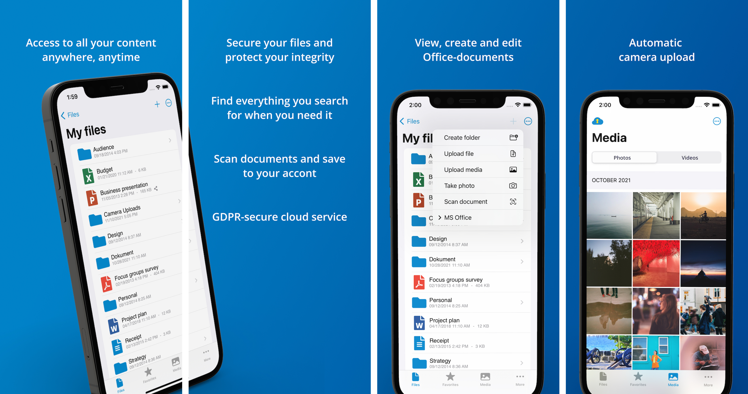 With the app, you can get automatic camera uploads of photos and videos, scan files directly to your Storegate account and edit Office files, among other things. You can download the Storegate app via the AppStore or Google Play Store.