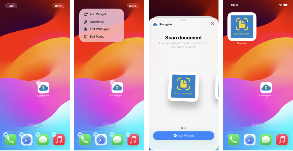 By pressing and holding the Storegate icon on your phone's home screen, you can quickly access the document scanner.
